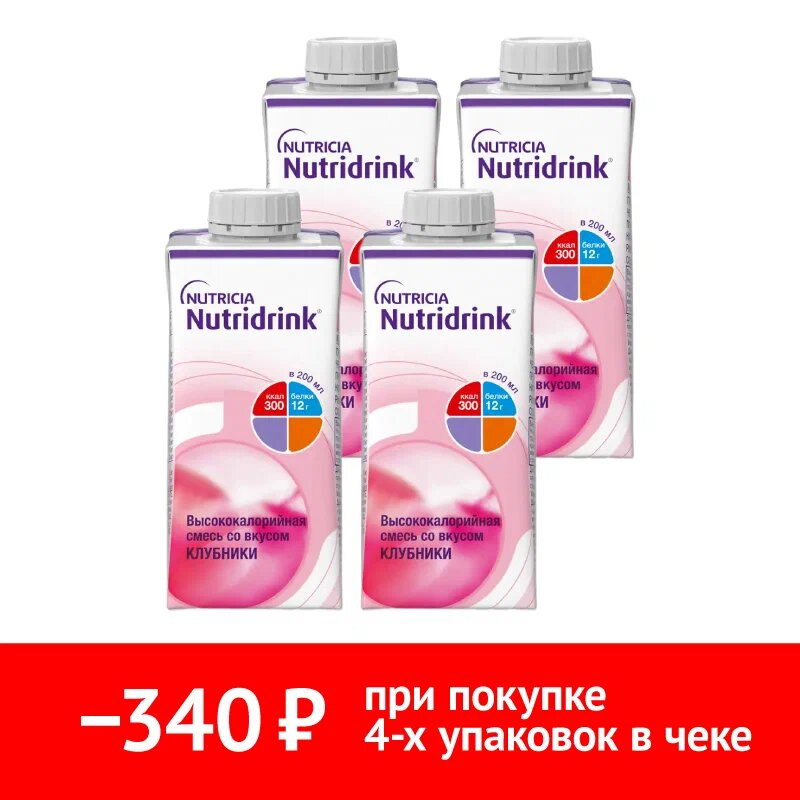 Набор 4 уп. Нутридринк 200 мл клубника (арт. S1535131) купить по цене 4 804 ₽ в интернет аптеке в Москве и Московской области — Aptstore