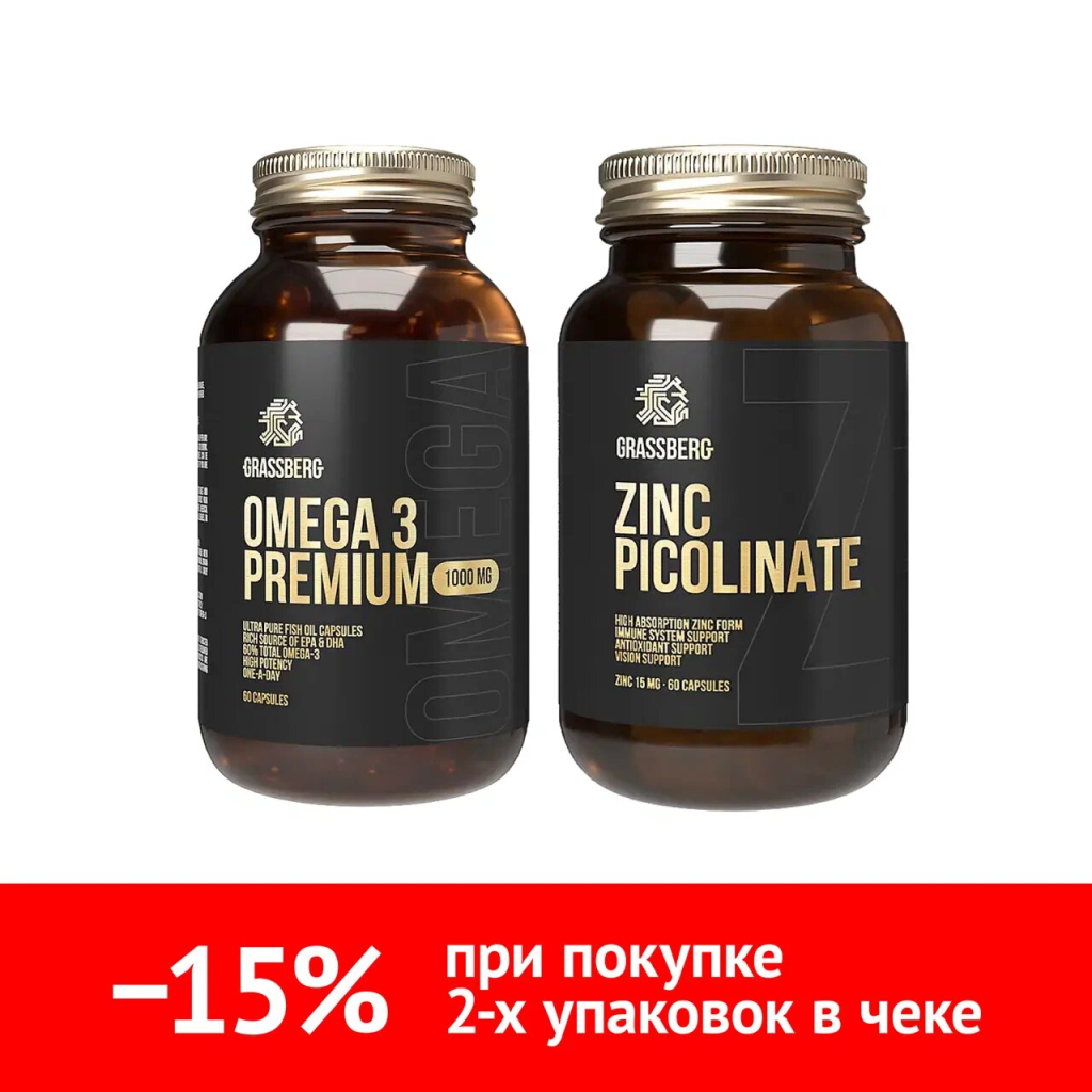 Набор Грассберг Омега 3 Премиум + Цинк (арт. S151477) купить по цене 3 640 ₽ в интернет аптеке в Москве и Московской области — Aptstore