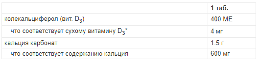 При беременности и в период лактации суточная доза препарата не должна превышать 1500 мг кальция и 600 МЕ колекальциферола (не более 1 таб./сут).