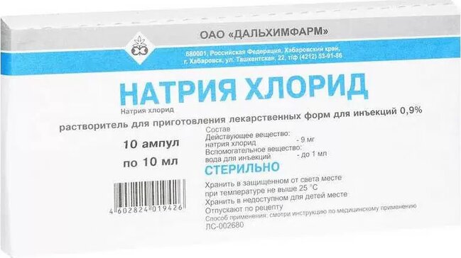 Действующее вещество: натрия хлорид — 9 мг