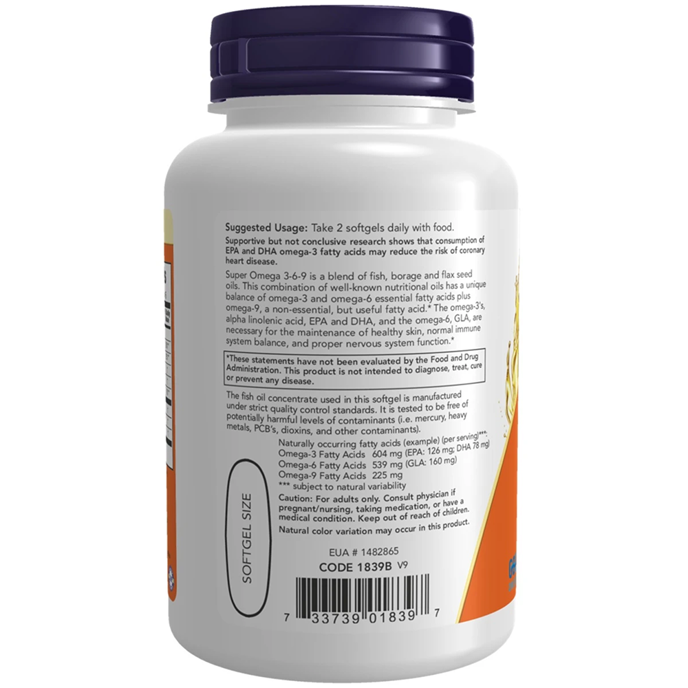 (Содержание: Омега-3 - 604 мг, Омега-6 - 539 мг, Омега-9 - 225 мг).