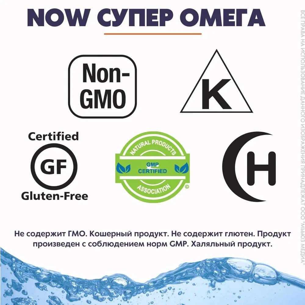 Супер Омега ЭПК производителя Now Foods очищена методом молекулярной дистилляции, что гарантирует 100% чистоту рыбьего жира от примесей.