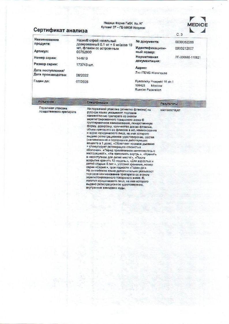 Действующие вещества: ксилометазолина гидрохлорид 0.1 мг, декспантенол 5 мг.