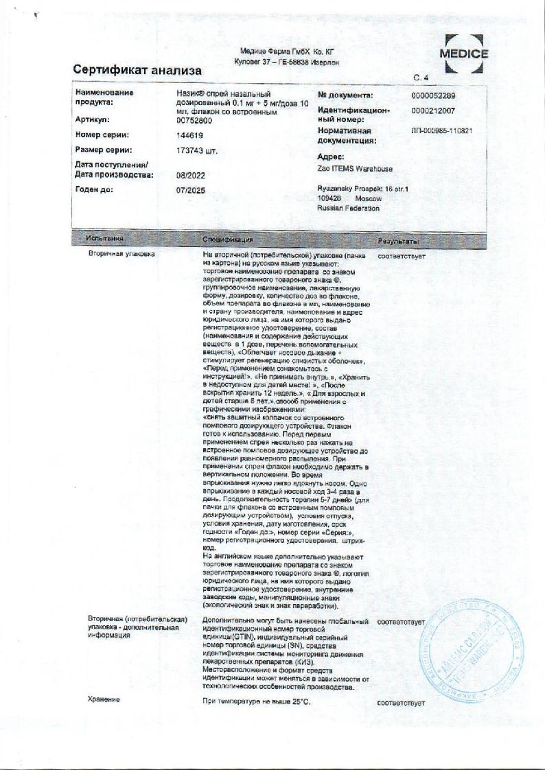При применении назального спрея флакон необходимо держать в вертикальном положении. Во время впрыскивания нужно легко вдохнуть носом. Одно впрыскивание в каждый носовой ход 3-4 раза в день.