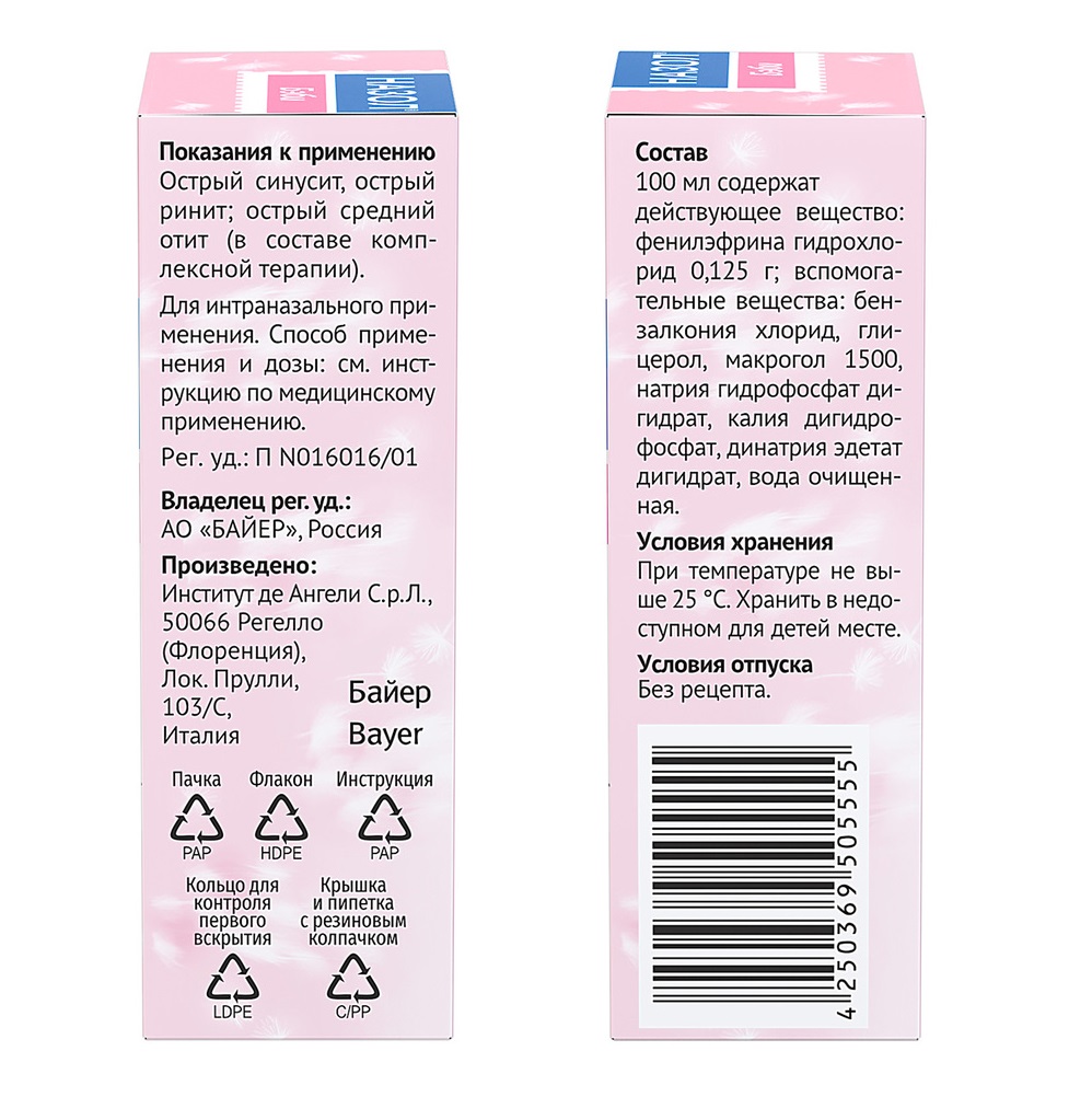 Активное вещество: фенилэфрина гидрохлорид 0.125 г.