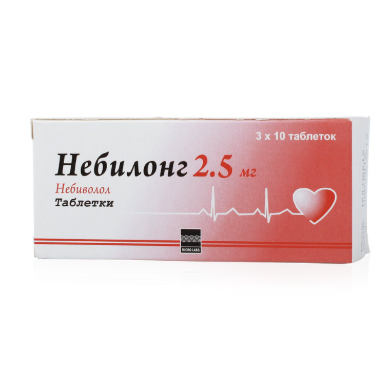 Действующее вещество: небиволол 2.5 мг.