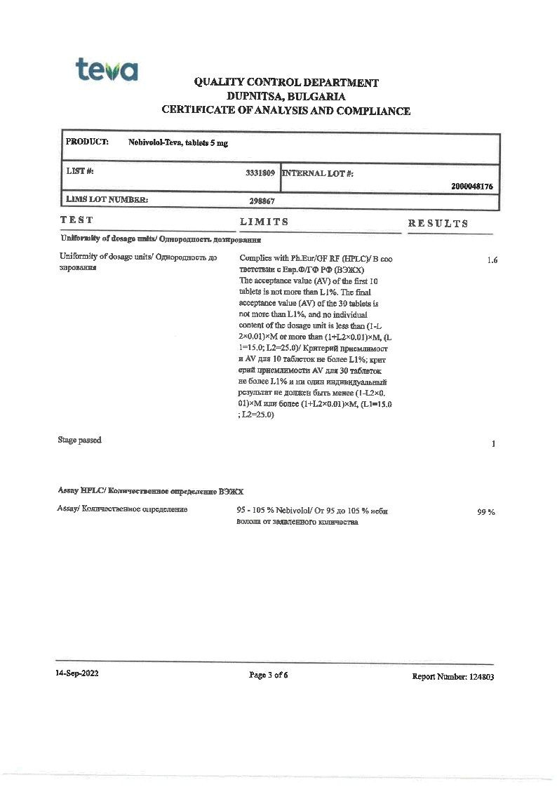 Небиволол-Тева можно применять в монотерапии или в сочетании с другими средствами, снижающими АД.