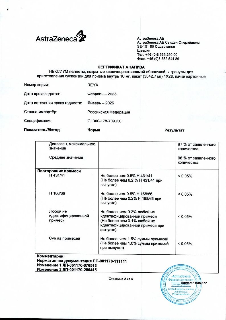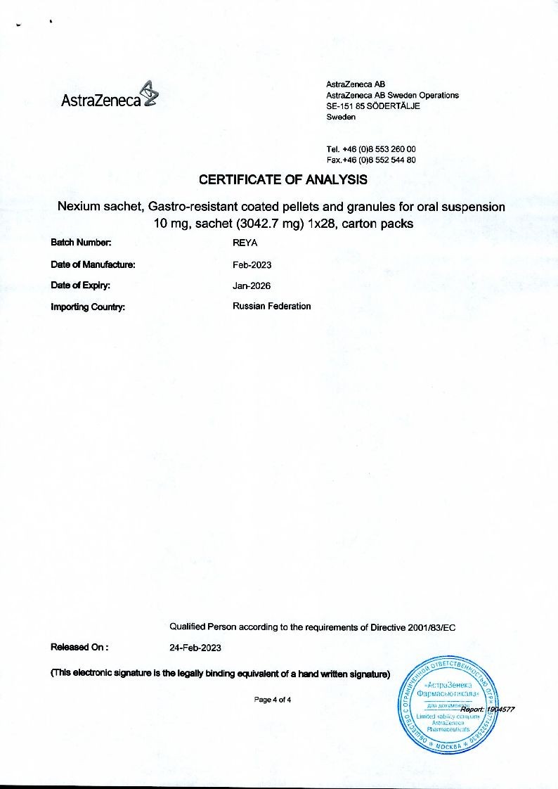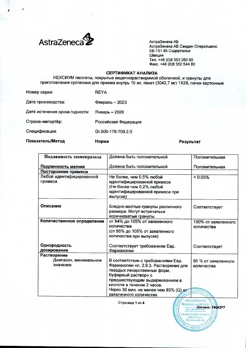 Внутрь. Для приема 10 мг препарата Нексиум® следует высыпать содержимое одного пакета в стакан, содержащий 15 мл воды. Для приема 20 мг препарата Нексиум® следует высыпать содержимое 2 пакетов в стакан, содержащий 30 мл воды. Для приема 40 мг препарата Нексиум® следует высыпать содержимое 4 пакетов в стакан, содержащий 60 мл воды. Содержимое стакана следует перемешать и подождать несколько минут, чтобы образовалась суспензия. Суспензию можно принять внутрь сразу или в течение 30 минут после приготовления, еще раз перемешав перед употреблением. Затем следует снова добавить в стакан 15 мл воды, размешать остатки и принять внутрь. Не следует использовать газированную воду. Пеллеты и гранулы нельзя разжевывать или дробить.