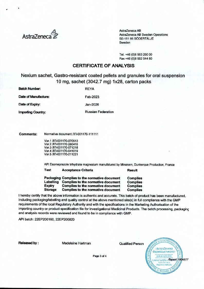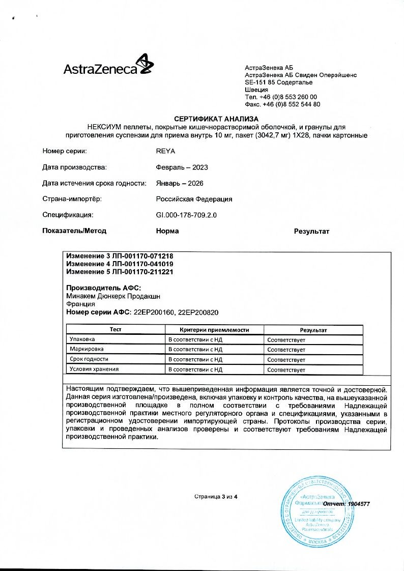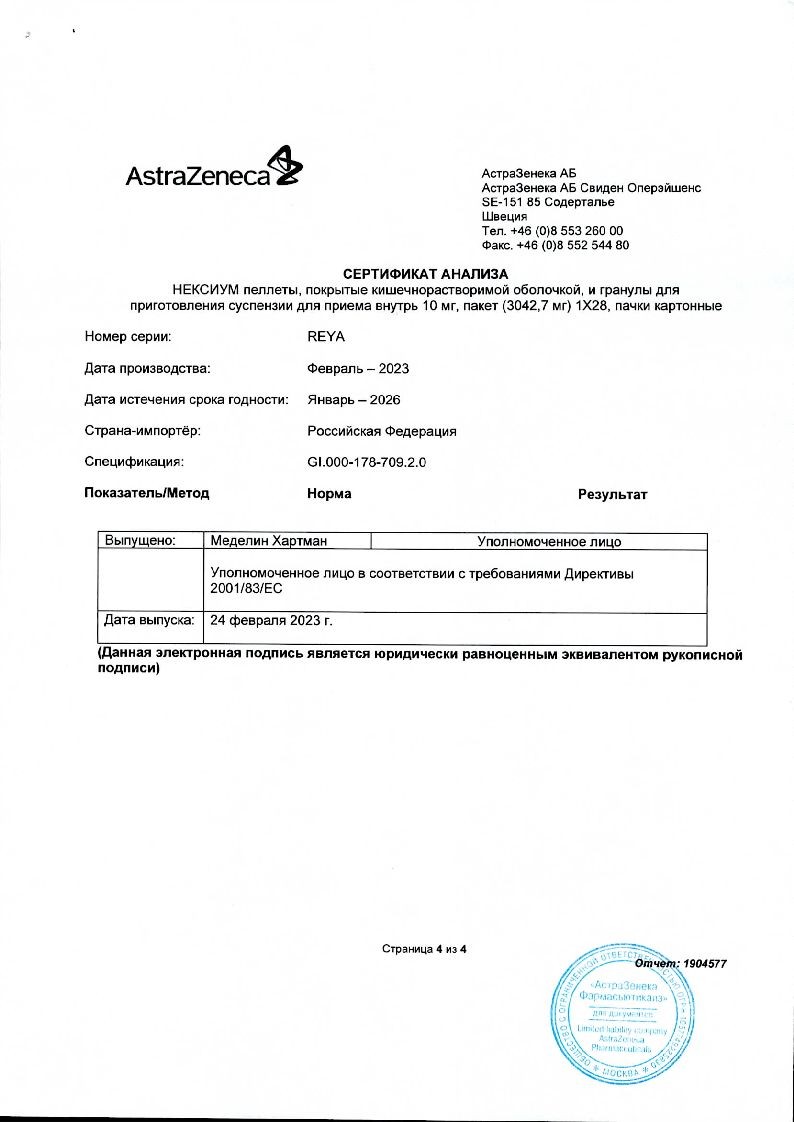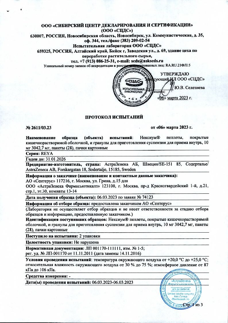 Внутрь. Для приема 10 мг препарата Нексиум® следует высыпать содержимое одного пакета в стакан, содержащий 15 мл воды. Для приема 20 мг препарата Нексиум® следует высыпать содержимое 2 пакетов в стакан, содержащий 30 мл воды. Для приема 40 мг препарата Нексиум® следует высыпать содержимое 4 пакетов в стакан, содержащий 60 мл воды. Содержимое стакана следует перемешать и подождать несколько минут, чтобы образовалась суспензия. Суспензию можно принять внутрь сразу или в течение 30 минут после приготовления, еще раз перемешав перед употреблением. Затем следует снова добавить в стакан 15 мл воды, размешать остатки и принять внутрь. Не следует использовать газированную воду. Пеллеты и гранулы нельзя разжевывать или дробить.