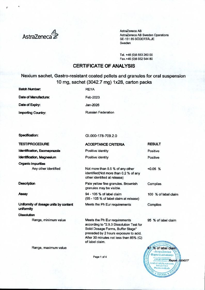 1. Для введения 10 мг препарата Нексиум® высыпать содержимое одного пакета в стакан, содержащий 15 мл воды.