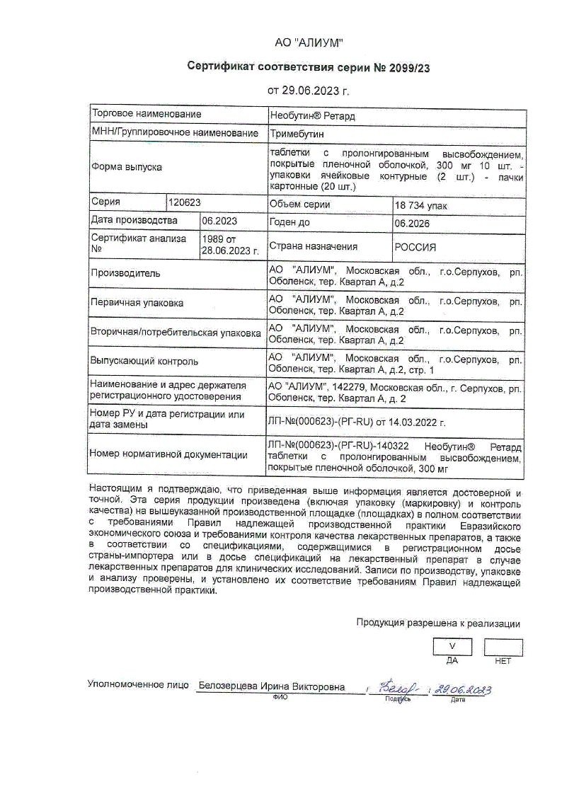 Для предупреждения рецидива синдрома раздраженного кишечника после проведенного курса лечения в период ремиссии рекомендуется продолжить прием препарата в дозе 300 мг/сут в течение 12 недель.