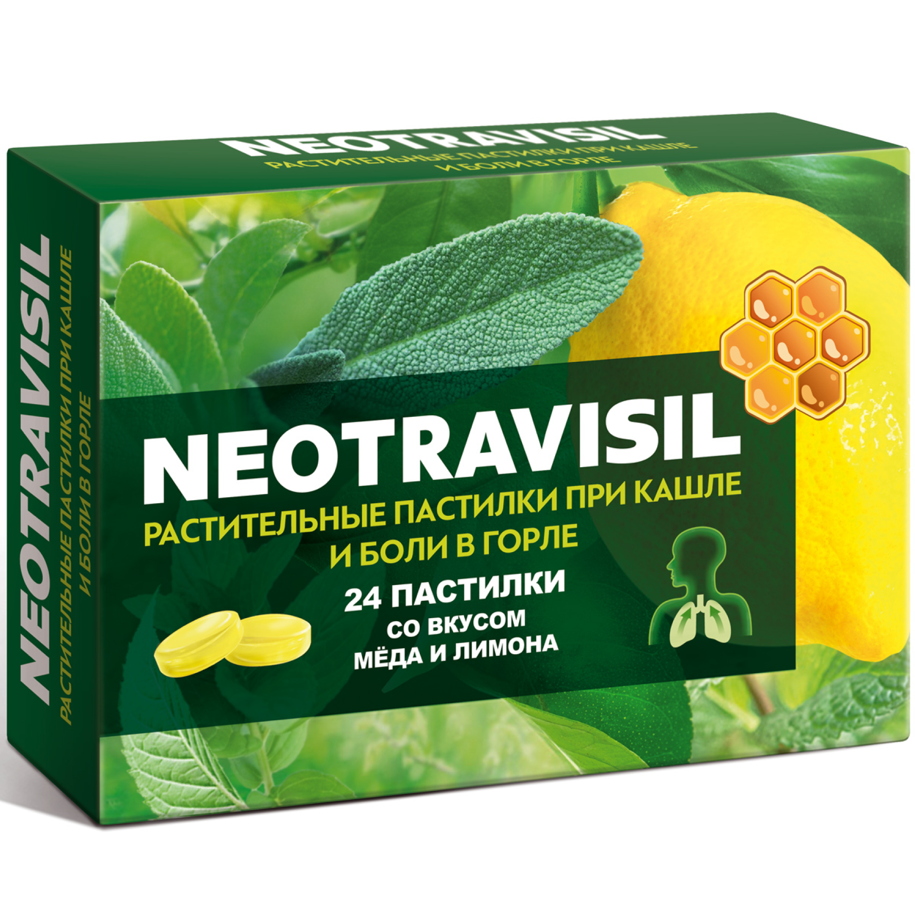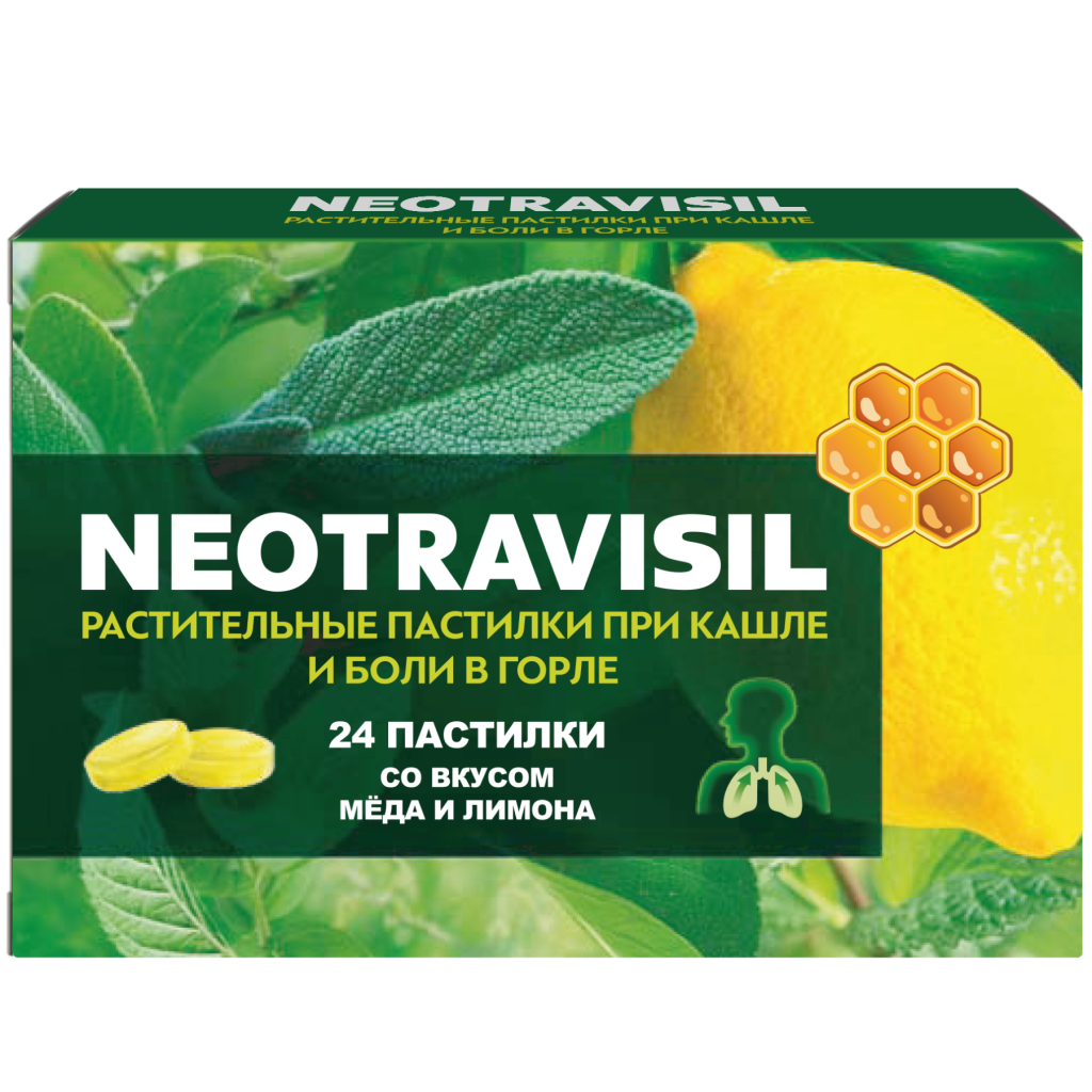 NEOTRAVISIL способствует снижению риска развития острых и хронических воспалительных заболеваний дыхательных путей, сопровождающихся кашлем (фарингит, ларингит, в том числе «лекторский», трахеит, бронхит) и болью в горле. NEOTRAVISIL показан к приему в качестве биологически активной добавки к пище - источника ментола, содержащей эфирные масла.