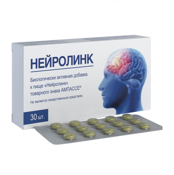 "Нейролинк" товарного знака Ампассе" содержит необходимые компоненты способствующие восстановлению поврежденных нервных клеток и улучшению работы головного мозга