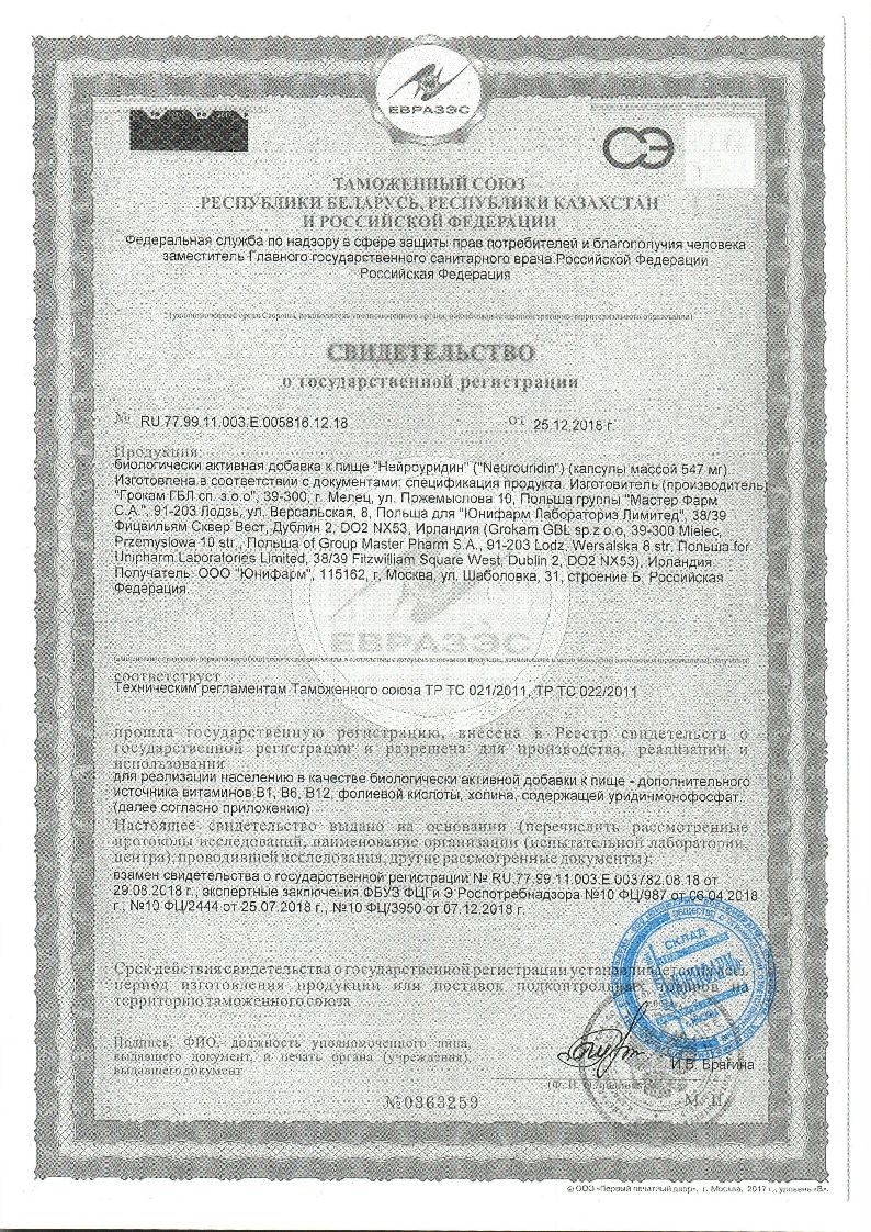 БАД - дополнительный источник витаминов группы В, холина, уридинмонофосфата.