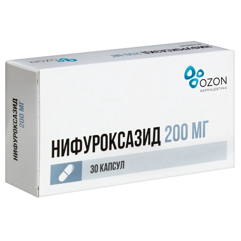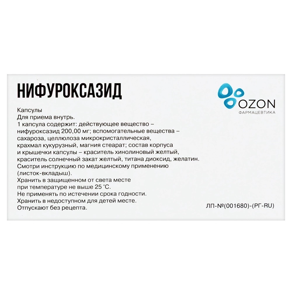 Действующее вещество: нифуроксазид - 200,00 мг.
