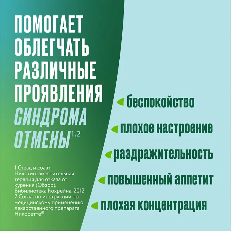Временный отказ от курения Жевательную резинку можно применять в периоды, когда необходимо воздержаться от курения, например, при нахождении в местах, где запрещено курить, или в других ситуациях, когда нужно воздержаться от курения.