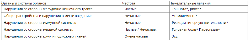 Нежелательные реакции, наблюдающиеся при комбинированной терапии пластыря трансдермального с резинками жевательными/таблетками подъязычными/спреем для местного применения, отличаются от таковых при использовании каждого из препаратов по отдельности только в отношении местных нежелательных явлений, связанных с конкретными лекарственными формами. Частота этих нежелательных реакций сравнима с частотой, приведенной в инструкции по применению для каждого препарата.
