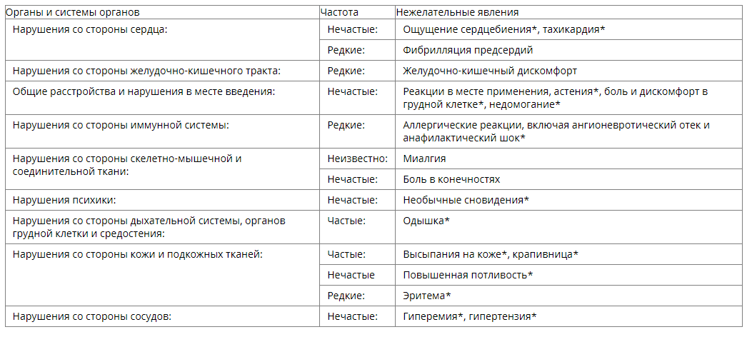 Тем не менее, теоретически, никотин может усиливать гемодинамические эффекты аденозина, т.е. приводить к повышению артериального давления и частоты сердечных сокращений, а также усиливать ответ на боль (боли в грудной клетке по типу стенокардии), провоцируемый введением аденозина.