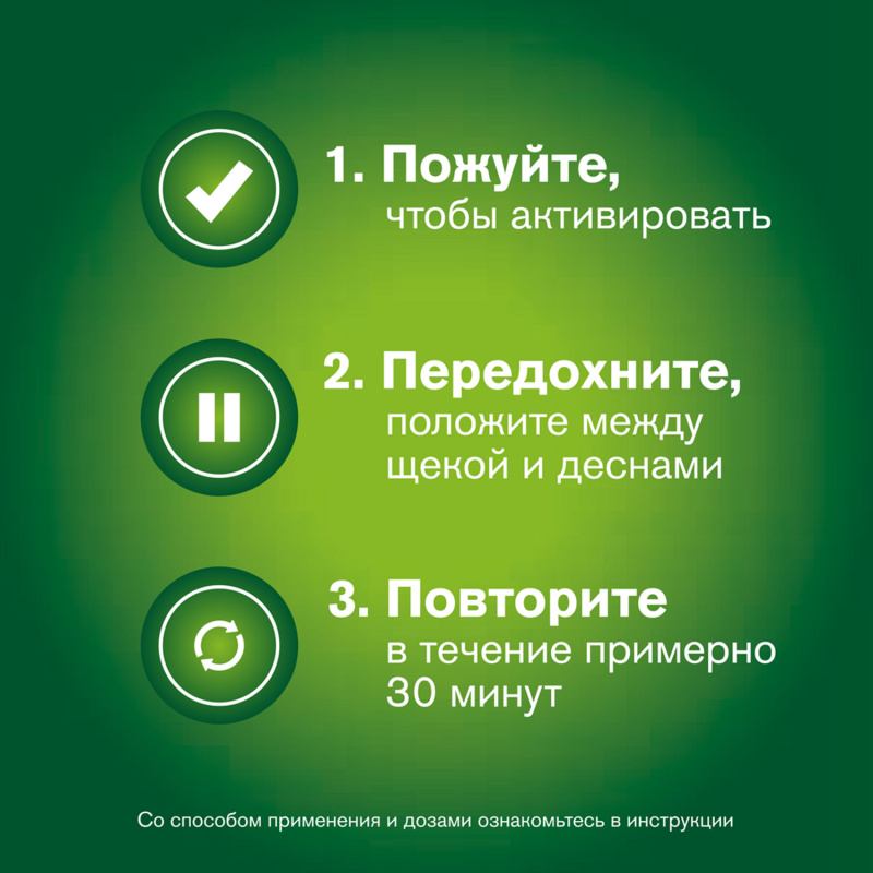 Единовременно жевать следует только одну подушечку, прекратив курение.