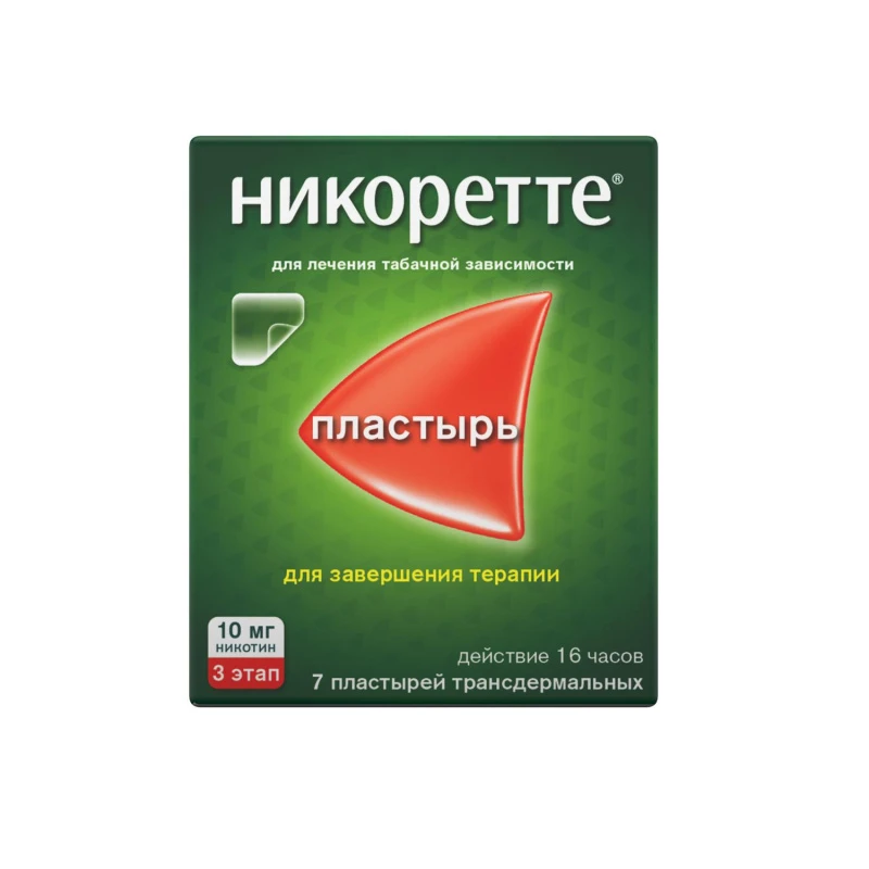 В комбинации с резинками жевательными, таблетками подъязычными, спреем для местного применения Для курильщиков с сильно выраженной никотиновой зависимостью (более 20 сигарет в день) или испытывающих непреодолимую тягу к курению, или курильщиков, которым не удалось отказаться от курения с применением только одного вида никотин-заместительной терапии, для быстрого облегчения тяги к курению возможно применение пластыря Никоретте® в комбинации с резинками жевательными Никоретте® дозировкой 2 мг/таблетками подъязычными Никоретте® дозировкой 2 мг/спреем для местного применения Никоретте® дозировкой 1 мг/доза. Пластырь накладывается на неповрежденный участок кожи сразу после пробуждения утром и удаляется перед сном. Пластырь должен накладываться на сухую, чистую, неповрежденную кожу, не содержащую волос, например, бедра, верхней конечности или грудной клетки. Необходимо изменять место наложения каждый день: не следует использовать одну и ту же область в течение двух последующих дней. После наложения пластыря тщательно вымойте руки, чтобы избежать раздражения глаз от возможного попадания в них никотина. Начальная терапия: Лечение следует начинать с пластыря 25 мг/16 часов (1 этап) в комбинации с резинками жевательными 2 мг/таблетками подъязычными 2 мг/спреем для местного применения 1 мг/доза. Обычно бывает достаточно 5–6 резинок жевательных/таблеток подъязычных в сутки или 13 доз спрея для местного применения в сутки. Максимальная суточная доза для резинок жевательных – 15 штук, для таблеток подъязычных – 24 штуки, для спрея для местного применения – 32 дозы. Пациенты должны полностью отказаться от курения во время терапии. Обычно общий курс лечения продолжается в течение 8 недель. После этого дозу никотина следует постепенно снижать. Отмена комбинированной терапии: Отменять комбинированную терапию можно двумя способами. Способ 1: в течение последующих 2 недель необходимо перейти с пластыря 25 мг/16 часов (1 этап) на пластырь 15 мг/16 часов (2 этап), а затем, в течение последующих 2 недель – на пластырь 10 мг/16 часов (3 этап), сохраняя при этом, если необходимо, количество применяемых резинок жевательных/таблеток подъязычных/доз спрея для местного применения, как и при Начальной терапии. Далее постепенно снижают количество резинок жевательных/таблеток подъязычных/доз спрея для местного применения до полной отмены в течение времени, которое необходимо пациенту в зависимости от его потребностей, но не позднее, чем через 12 месяцев после начала применения комбинированной терапии. Способ 2: заключается в полной отмене пластыря сразу после окончания этапа Начальной терапии. Далее постепенно снижают количество резинок жевательных/таблеток подъязычных/доз спрея для местного применения до полной отмены в течение времени, которое необходимо пациенту в зависимости от его потребностей, но не позднее, чем через 12 месяцев после начала применения комбинированной терапии.