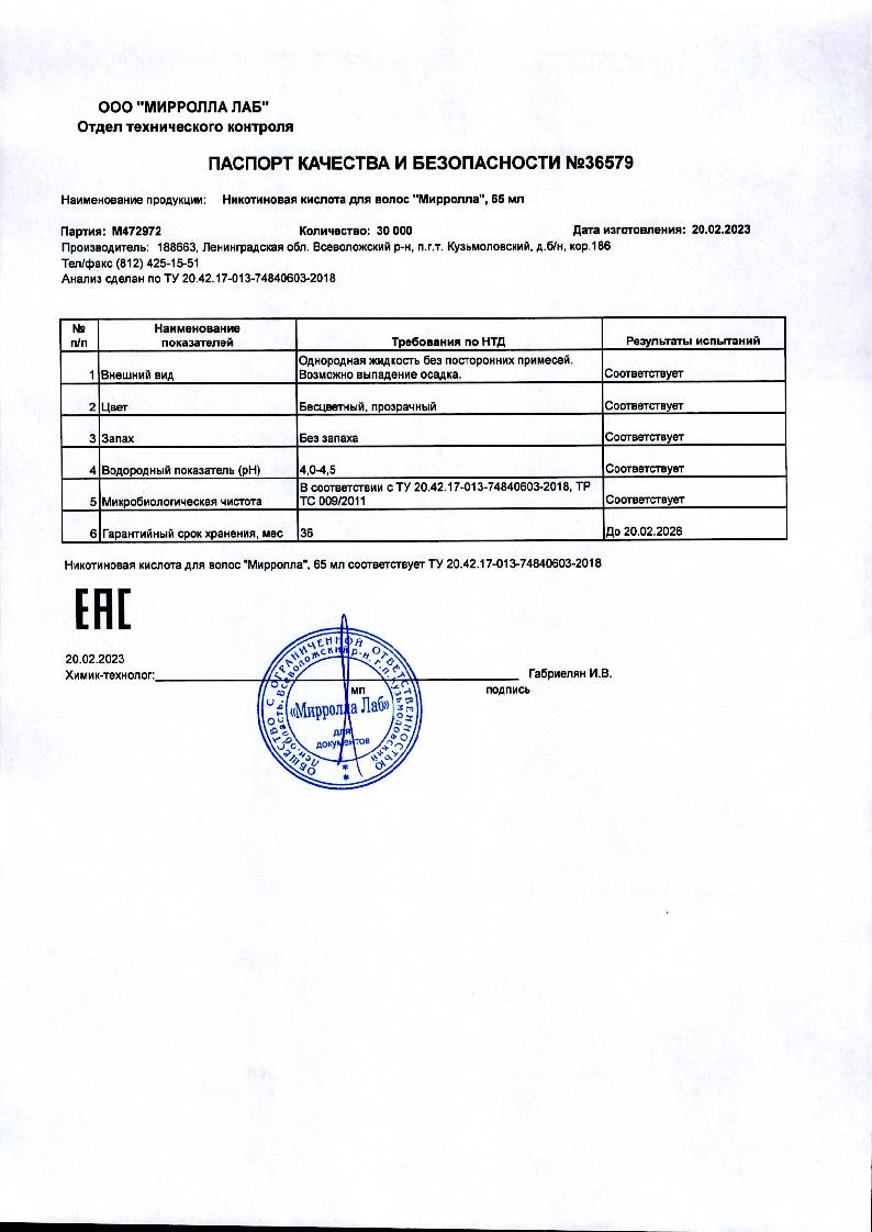 Косметический препарат никотиновой кислоты Мирролла помогает насытить витамином волосяные фолликулы, улучшить микроциркуляцию в капиллярах, усилить поступление крови и питательных веществ. Средство дает толчок к активации процесса роста, поддерживает его, способствуя прорастанию новых крепких волосяных стержней, предотвращает выпадение уже имеющихся, способствует повышению эластичности и гладкости волос. Результат после 1–2 курсов использования сыворотки: