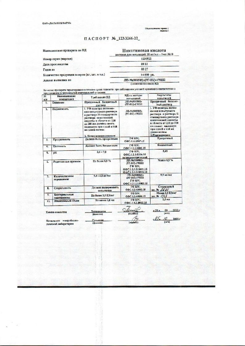Активное вещество: никотиновая кислота - 10 мг