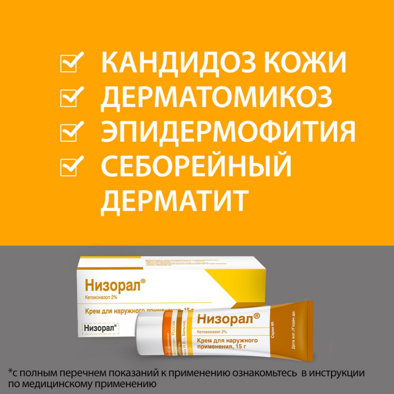 Кандидоз кожи, дерматомикоз гладкой кожи, паховая эпидермофития, эпидермофития кистей и стоп, отрубевидный лишай: рекомендуется наносить Низорал® крем один раз в день на пораженную кожу и непосредственно прилегающую к ней область. Себорейный дерматит: Низорал® крем наносится на пораженную область один или два раза в день в зависимости от тяжести поражения. Следует продолжать лечение в течение достаточного промежутка времени, по крайней мере, в течение нескольких дней после исчезновения всех симптомов заболевания. Диагноз следует пересмотреть, если не отмечается клинического улучшения после 4-х недель лечения. Следует соблюдать общие меры гигиены для контроля за источниками инфекции и реинфекции. Обычная продолжительность лечения следующая: отрубевидный лишай – 2–3 недели, дрожжевые инфекции – 2–3 недели, паховая эпидермофития – 2–4 недели, дерматомикоз гладкой кожи – 3–4 недели, эпидермофития стоп – 4–6 недель. Обычная продолжительность лечения в случае себорейного дерматита – 2–4 недели. Для поддерживающей терапии при себорейном дерматите крем наносится один или два раза в неделю.