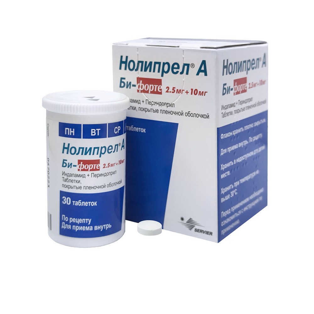 НОЛИПРЕЛ А БИ-ФОРТЕ - комбинированный препарат, содержащий периндоприла аргинин и индапамид. Фармакологические свойства препарата Нолипрел А Би-форте сочетают в себе отдельные свойства каждого из компонентов. Комбинация периндоприла аргинина и индапамида усиливает действие каждого из них.