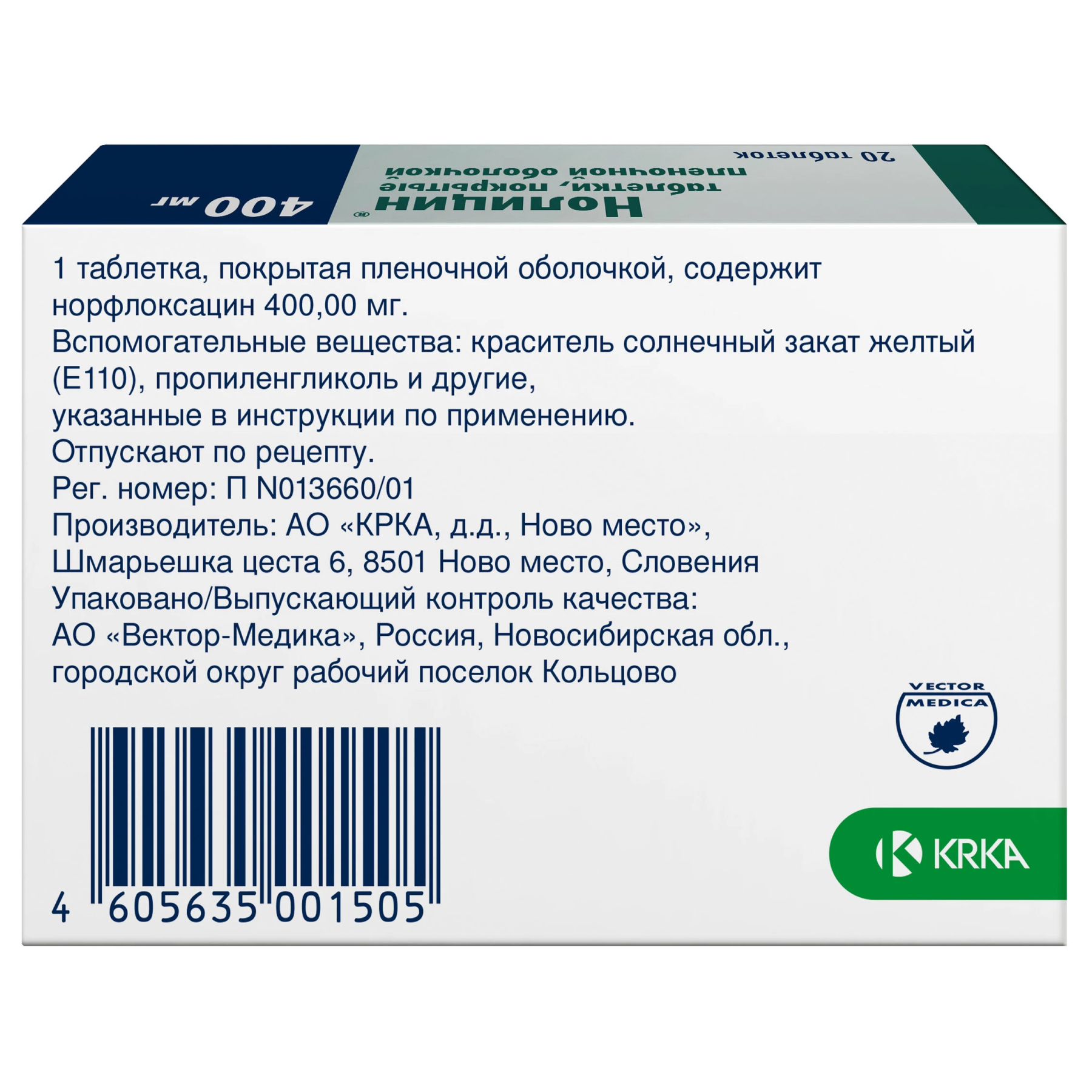 При приеме внутрь всасывается около 30-40%, прием пищи уменьшает скорость абсорбции. Связывание с белками плазмы крови составляет 14%. Норфлоксацин хорошо распределяется в тканях урогенитальной системы. Проникает через плацентарный барьер. Около 30% выводится с мочой в неизмененном виде.