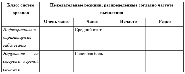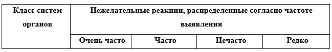 Для описания частоты нежелательных реакций используется следующая классификация: очень частые (≥1/10), частые (≥1/100 и <1/10), нечастые (≥1/1000 и <1/100), редкие (≥1/10000 и <1/1000) и очень редкие (<1/10000). Соответствующая категория присваивается нежелательным реакциям на основании объединенного анализа клинических исследований.