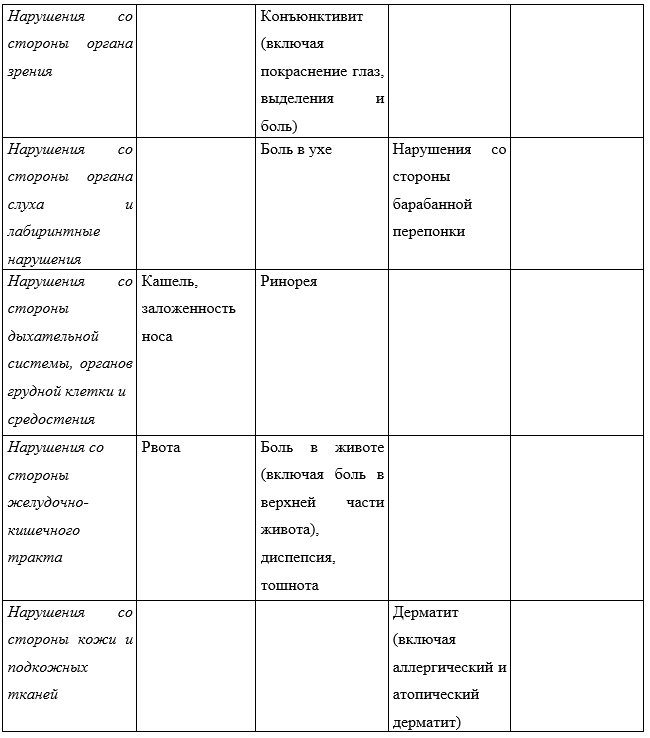 В таблице 2 представлены HP, наиболее часто сообщаемые в ходе клинических исследований у детей.