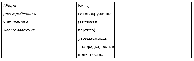 Большинство указанных HP были зарегистрированы однократно в первый или второй день терапии и спонтанно разрешались в течение последующих 1-2 дней.