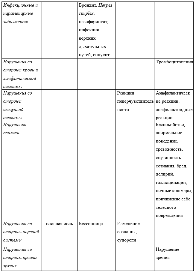 Таблица 1. Нежелательные реакции, выявленные в ходе клинических исследований по профилактике и лечению гриппа осельтамивиром у взрослых пациентов и подростков или в ходе пострегистрационного наблюдения.