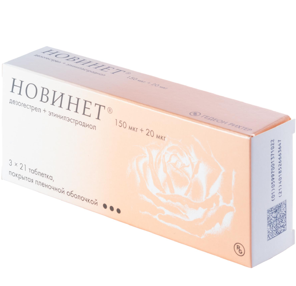 Контрацептивный эффект комбинированных пероральных контрацептивных препаратов (КОК) основан на взаимодействии различных факторов, самыми важными из которых являются подавление овуляции и повышение вязкости секрета шейки матки, препятствующее проникновению сперматозоидов в полость матки. Препарат Новинет® представляет собой комбинацию дезогестрела и этинилэстрадиола: дезогестрел - синтетический прогестаген, обладающий сильной ингибирующей овуляцию активностью, этинилэстрадиол является хорошо известным синтетическим эстрогеном.