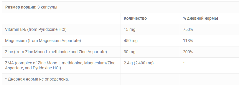 ZMA - это комплексное сочетание из цинка и магния, которая обеспечивает максимально эффективное и быстрое усвоение этих микроэлементов.