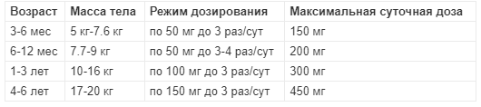Для детей младше 6 лет доза зависит от возраста и массы тела ребенка. Максимальная суточная доза не должна превышать 30 мг/кг массы тела c интервалами между приемами препарата 6-8 ч.