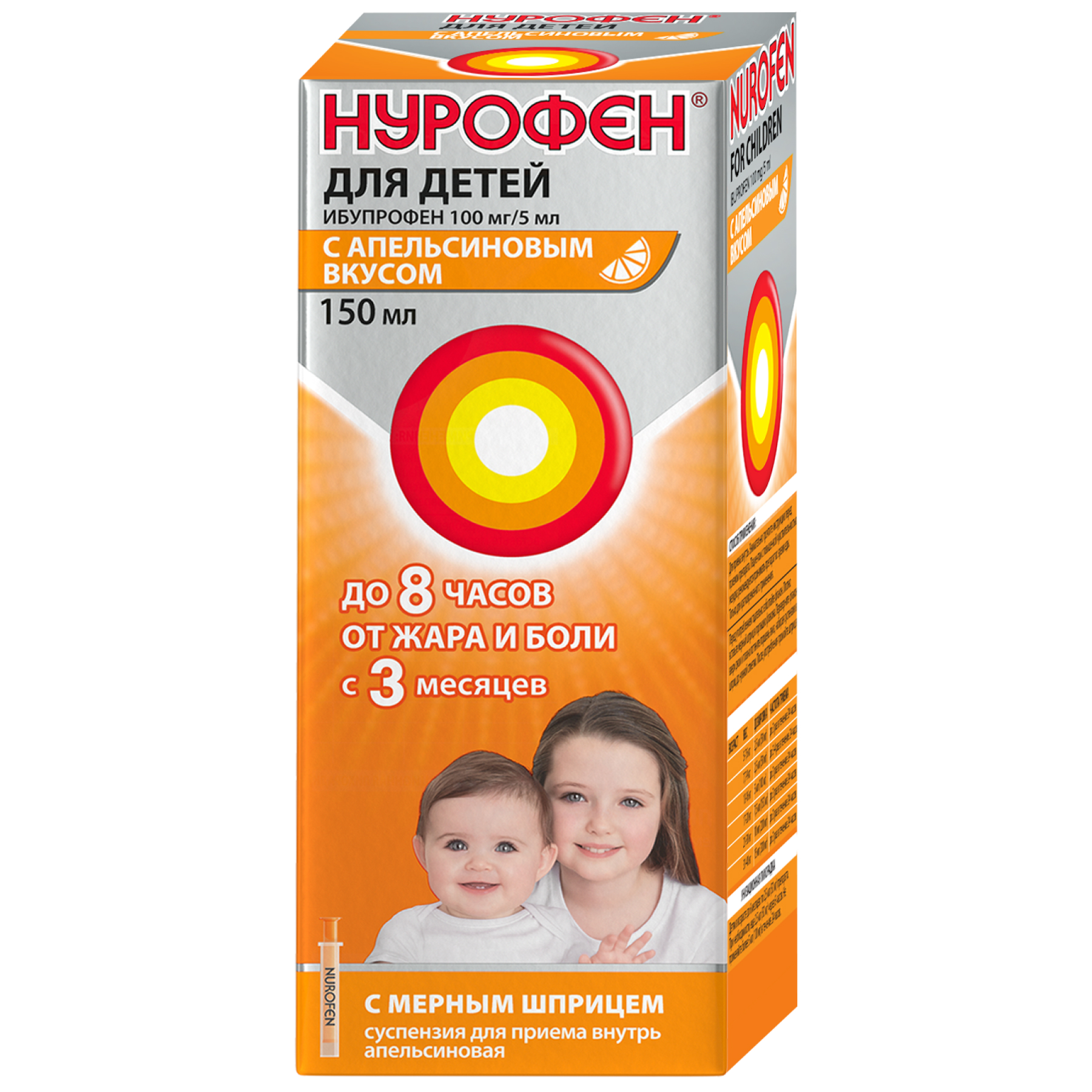 Нурофен® для детей - суспензия, специально разработанная для детей. Для приема внутрь. Пациентам с повышенной чувствительностью желудка рекомендуется принимать препарат во время еды.
