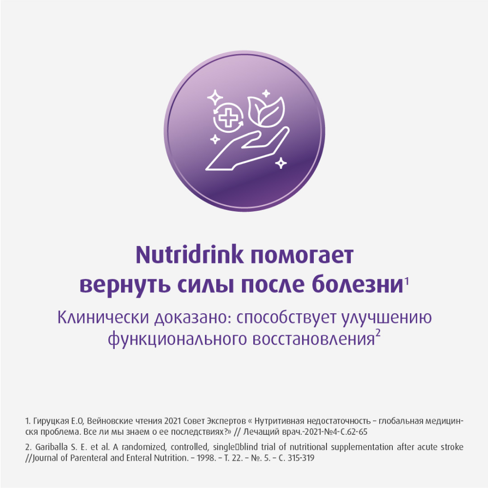 Для перорального питания пациентов, которые могут питаться самостоятельно в период восстановления после инсульта и других критических состояний, а также в период подготовки и восстановления после оперативных вмешательств.