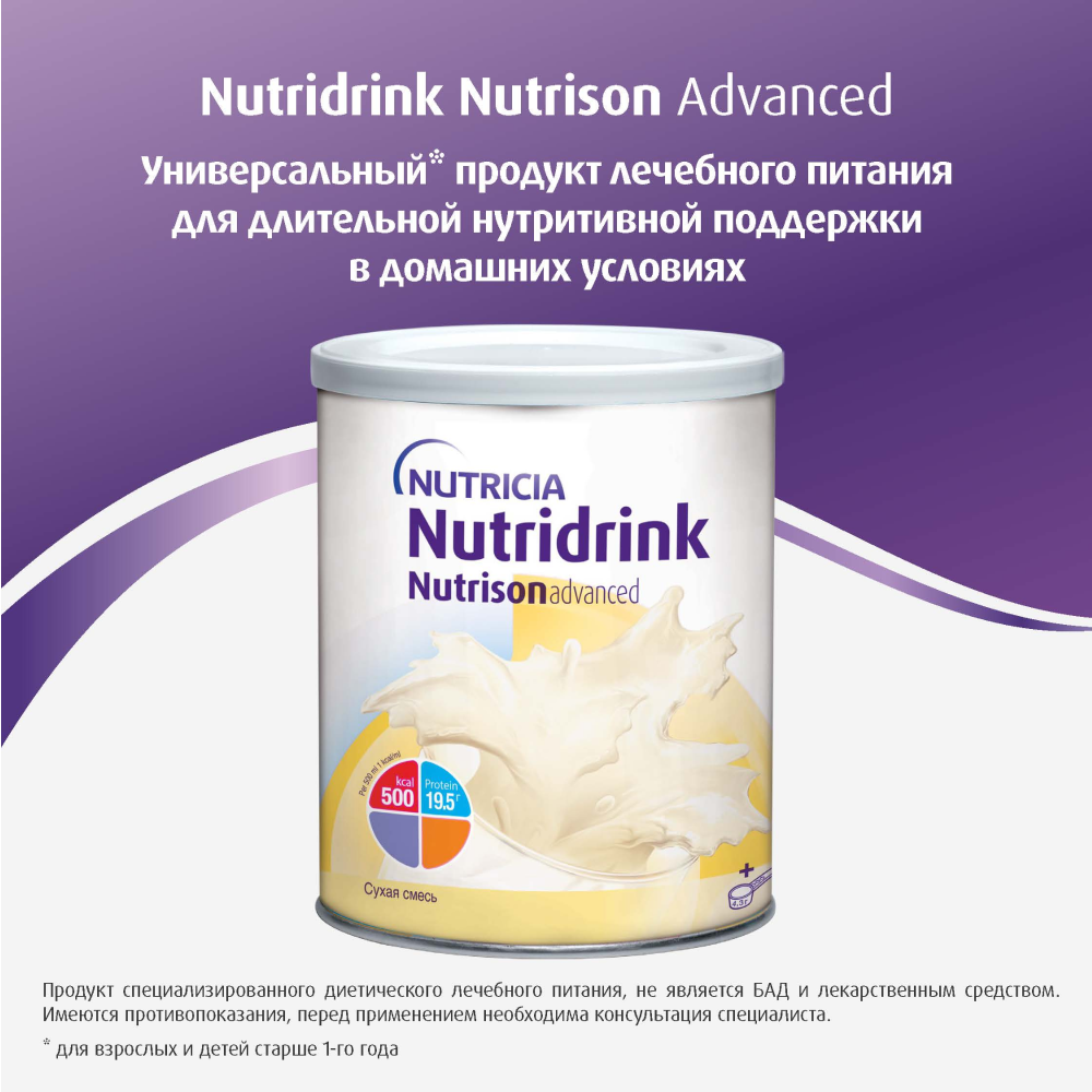 Специализированная сухая смесь для диетического лечебного питания, имеет две степени разведения (гипер- и изокалорическая) для удовлетворения специфических потребностей пациентов в белке и энергии в период лечения и реабилитации.