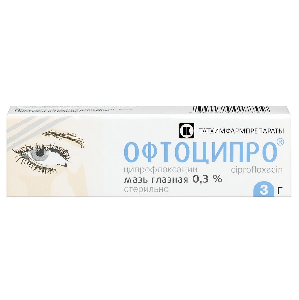 К препарату резистентны: Bacteroides fragilis, Pseudomonas cepacia, Pseudomonas maltophilia, Ureaplasma urealyticum, Clostridium difficile, Nocardia asteroides. Не эффективен в отношении Treponema pallidum. Резистентность развивается крайне медленно, поскольку, с одной стороны, после действия ципрофлоксацина практически не остается персистирующих микроорганизмов, а с другой - у бактериальных клеток нет ферментов, инактивирующих его.Аллергические реакции, зуд, жжение, легкая болезненность и гиперемия конъюнктивы, тошнота, редко - отек век, светобоязнь, слезотечение, ощущение инородного тела в глазах, неприятный привкус во рту сразу после закладывания, снижение остроты зрения, появление белого кристаллического преципитата у больных с язвой роговицы, кератит, кератопатия, инфильтрация роговицы, развитие суперинфекции.
