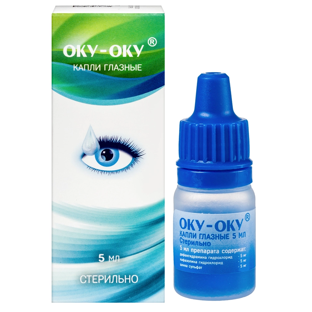 ОКУ-ОКУ® является комбинированным препаратом, содержащим дифенгидрамин, нафазолин и цинка сульфат.