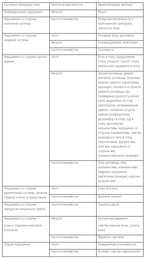Нижеследующие нежелательные явления отмечались в ходе клинических исследований и пострегистрационного применения препарата и классифицированы согласно следующей градации частоты встречаемости нежелательных явлений: очень часто (≥1/10), часто (от ≥1/100 до <1/10), нечасто (от ≥1/1,000 до <1/100), редко (от ≥1/10,000 до <1/1000), очень редко (<1/10,000), частота неизвестна (частота встречаемости не может быть определена на основании имеющихся данных). В пределах каждой группы нежелательные явления перечислены в порядке снижения серьезности.