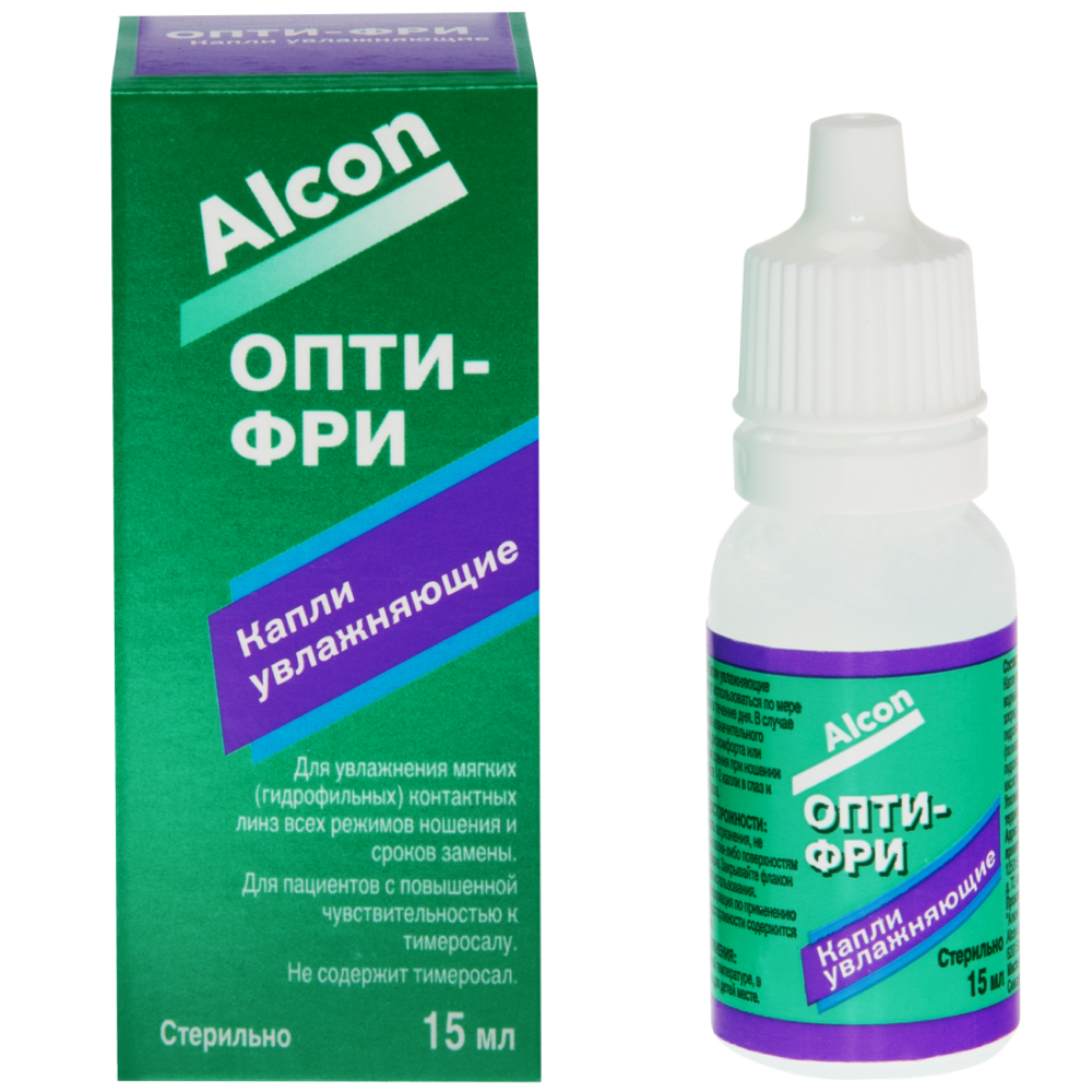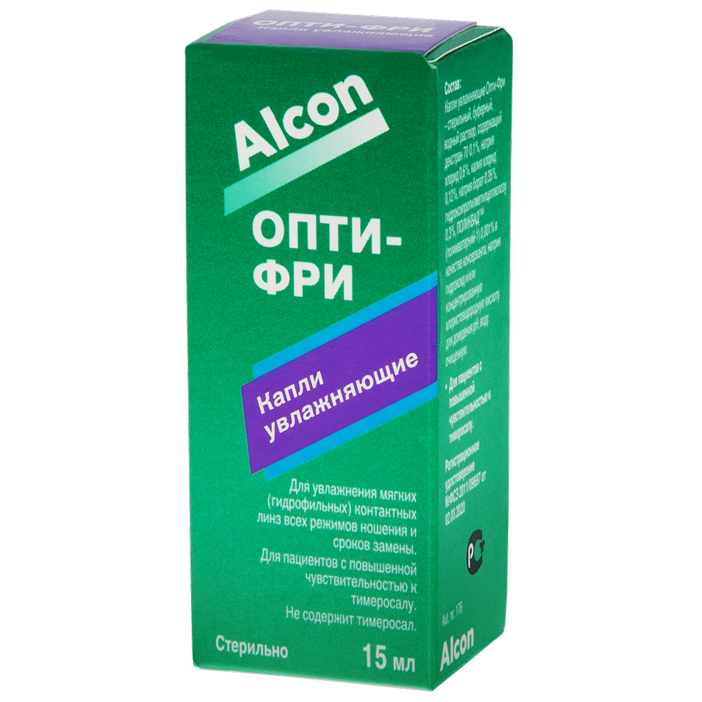 Капли увлажняющие Опти-Фри - это стерильный, буферный, водный раствор, содержащий декстран 70 0,1%, натрия хлорид 0,6%, калия хлорид 0,12%, натрия борат 0,35%, гидроксипропилметилцеллюлозу 0,3%, ПОЛИКВАД® (поликватерний-1) 0,001% в качестве консерванта, натрия гидроксид и/или концентрированную хлористоводородную кислоту для доведения рН, воду очищенную.