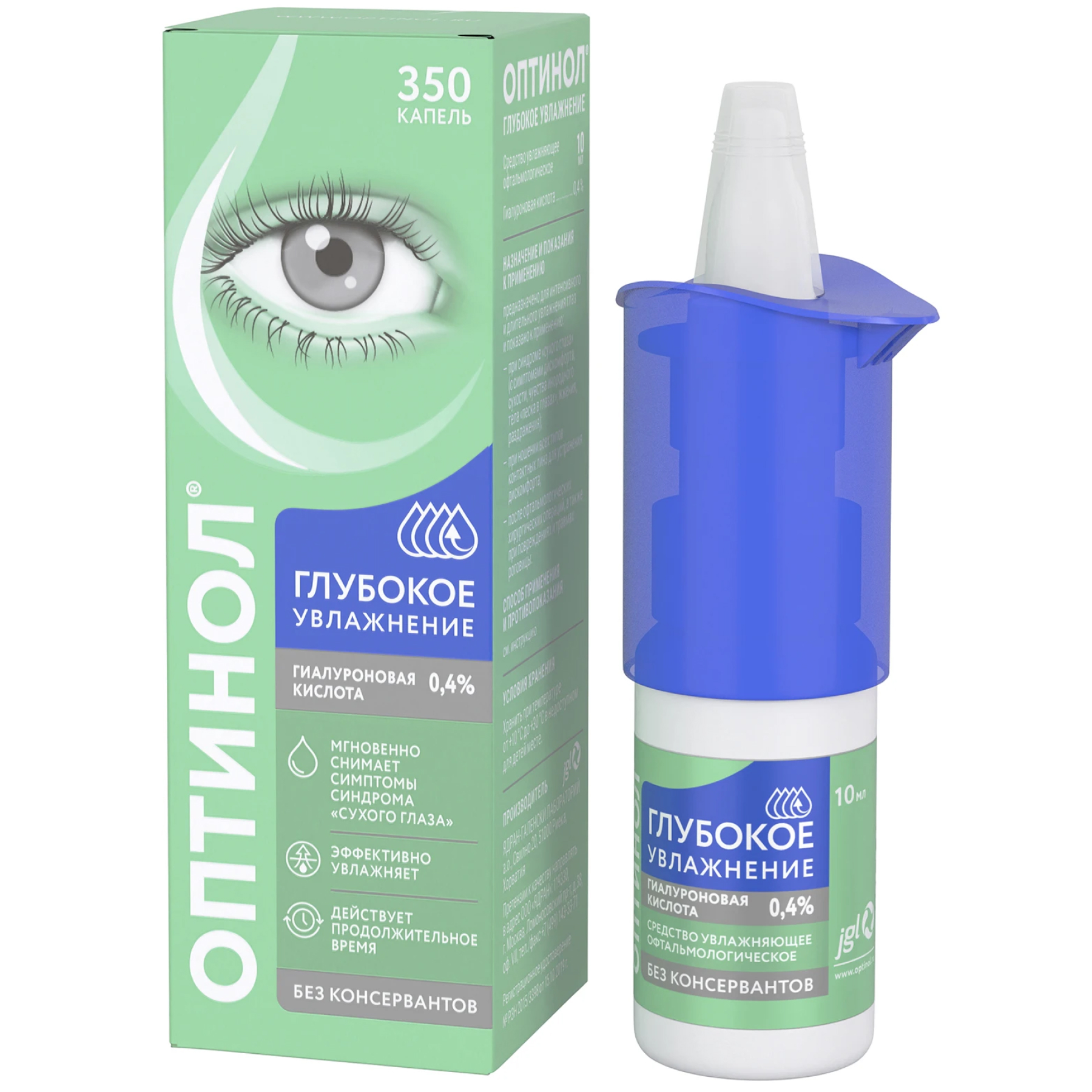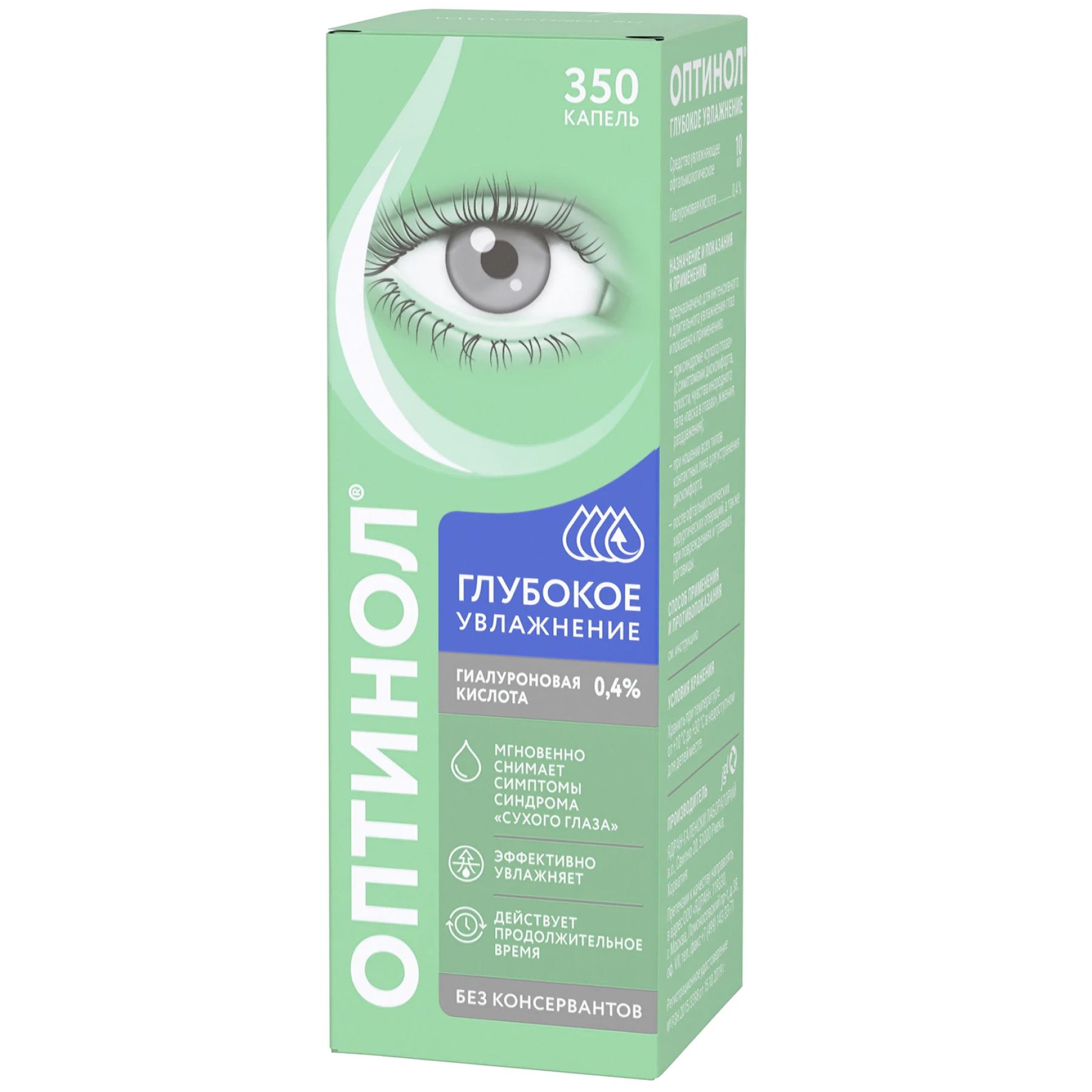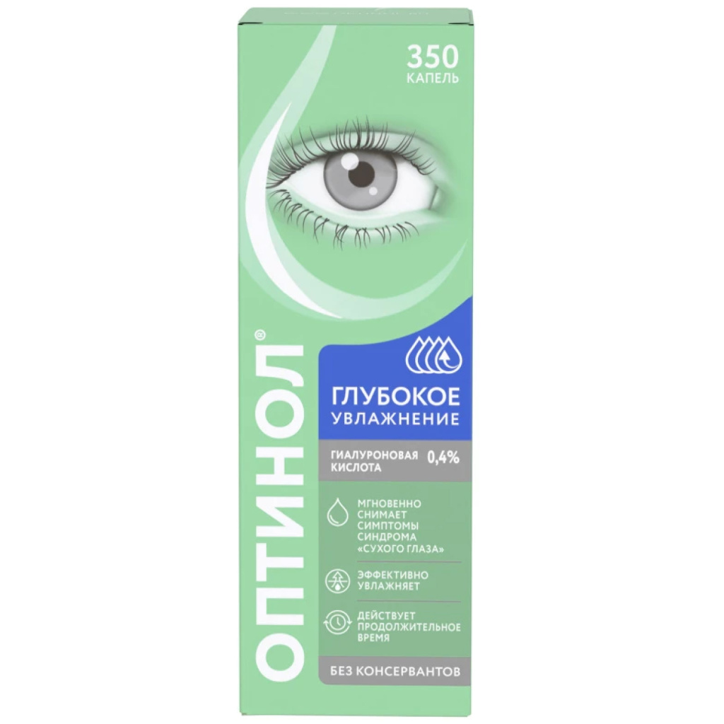 Отсутствие консервантов и наличие такого компонента, как природное увлажняющее вещество гиалуроновая кислота (в виде натриевой соли), обеспечивает хорошую переносимость средства Оптинол® Глубокое увлажнение даже при длительном применении.