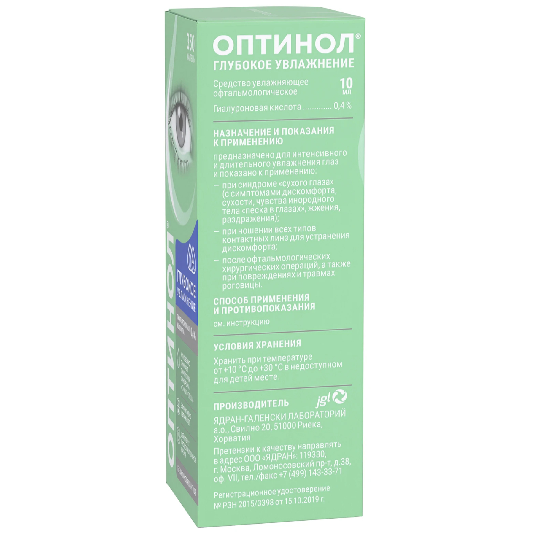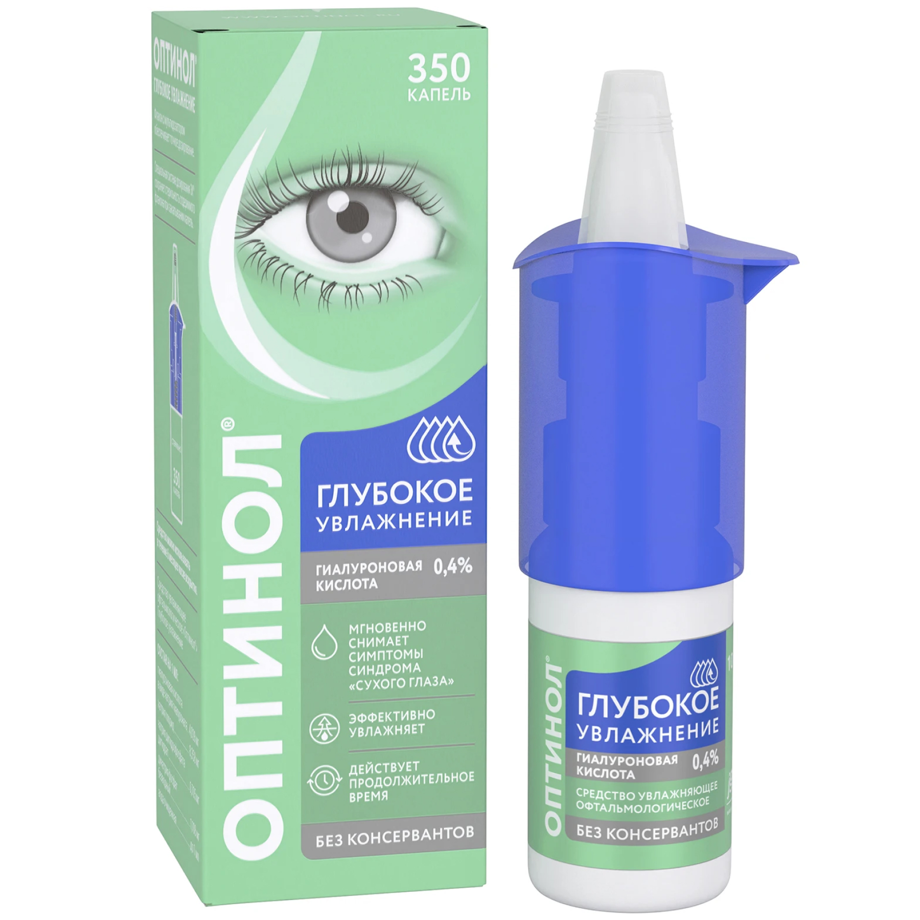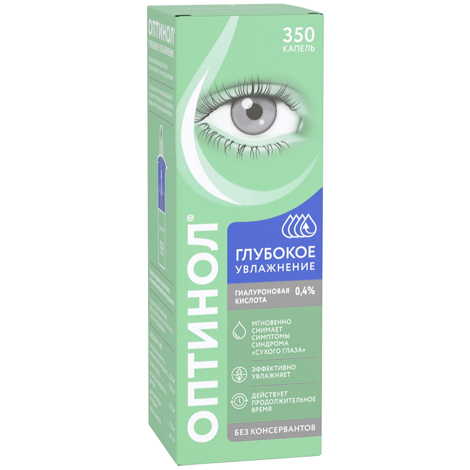 Отсутствие консервантов и наличие такого компонента, как природное увлажняющее вещество гиалуроновая кислота (в виде натриевой соли), обеспечивает хорошую переносимость средства Оптинол® Глубокое увлажнение даже при длительном применении.