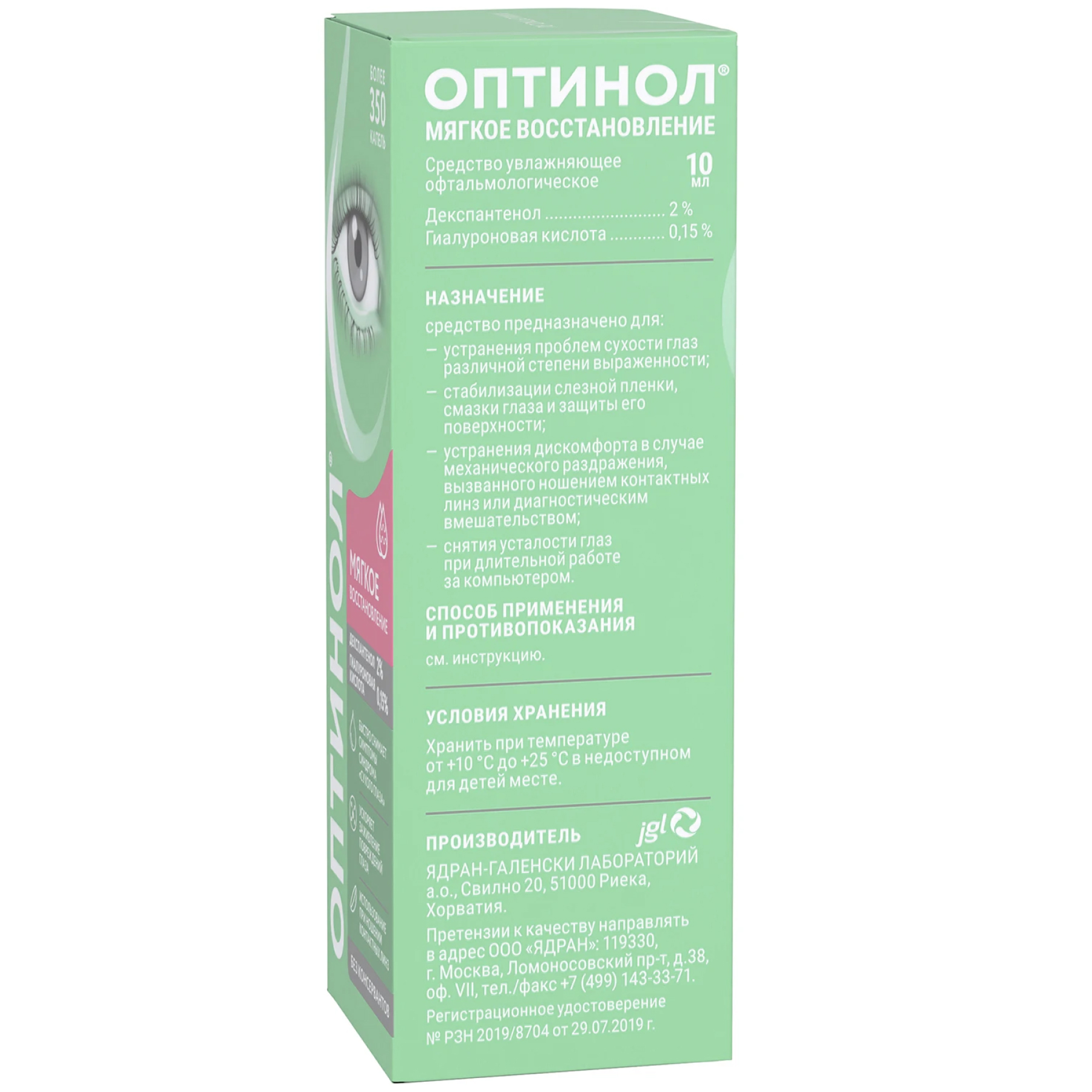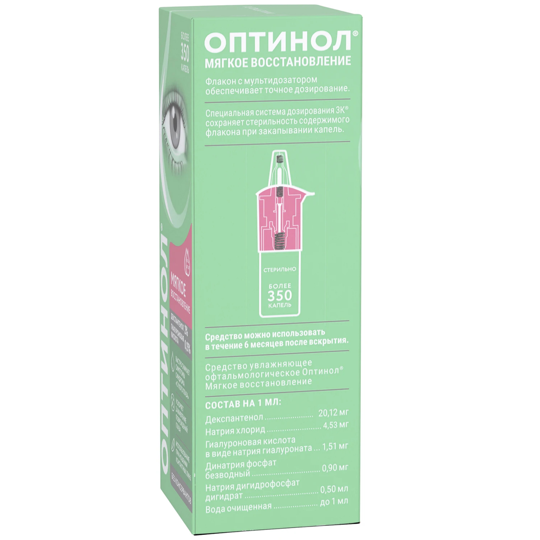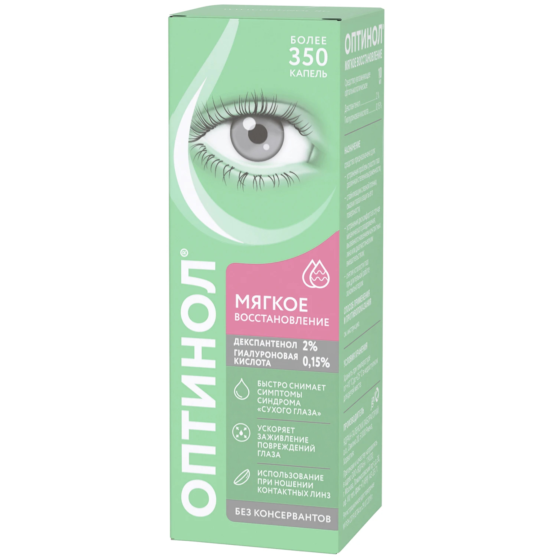 - Глазные мази/гели должные применяться после закапывания средства увлажняющего офтальмологического Оптинол Мягкое восстановление.