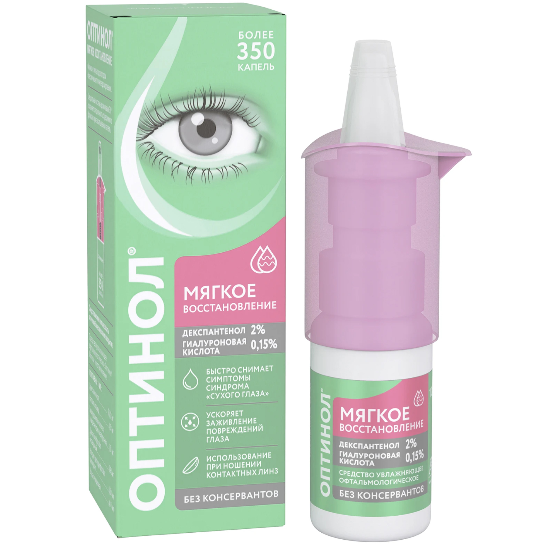 - При ношении всех типов контактных линз средство увлажняющее офтальмологическое Оптинол Мягкое восстановление можно закапывать в конъюнктивальный мешок без снятия линз.