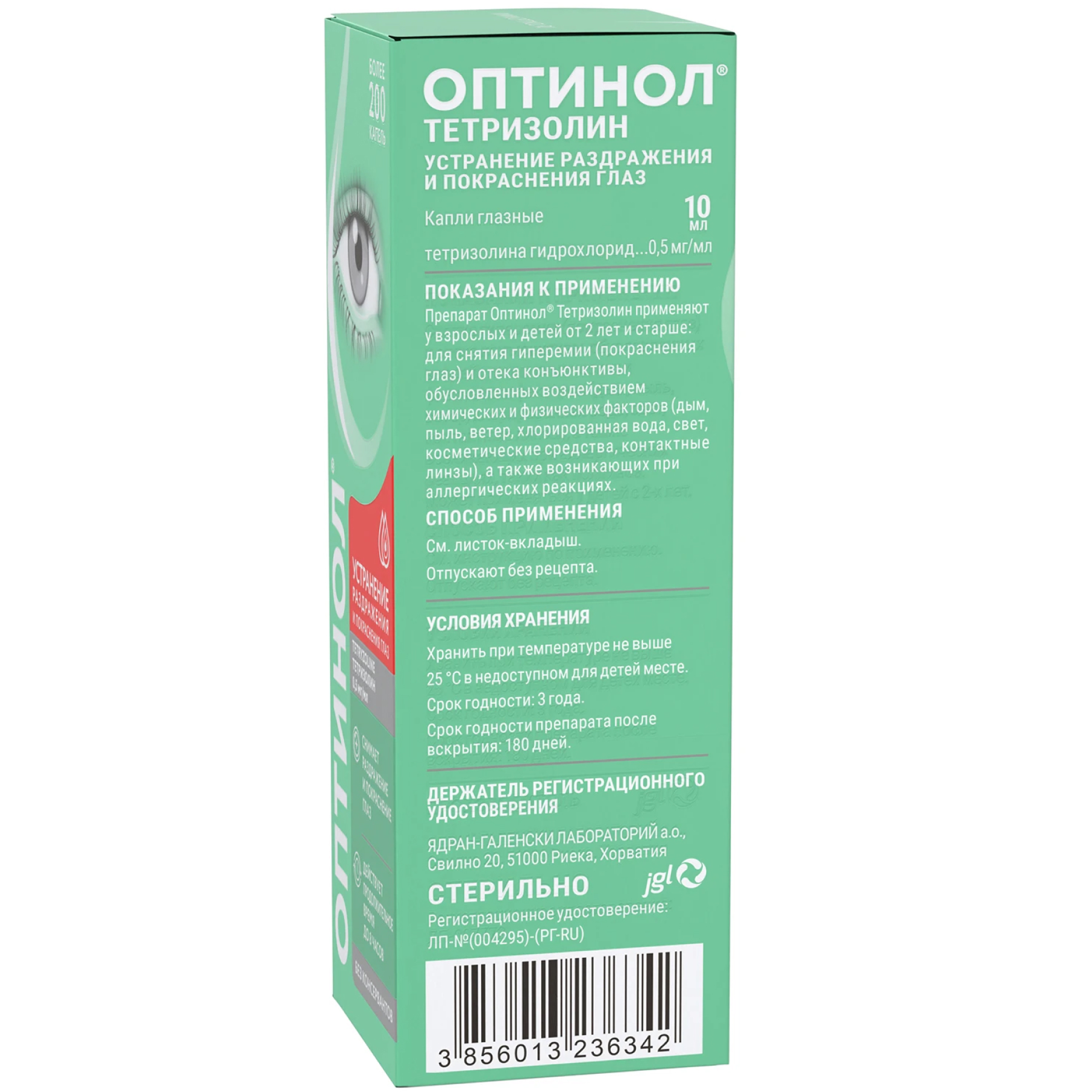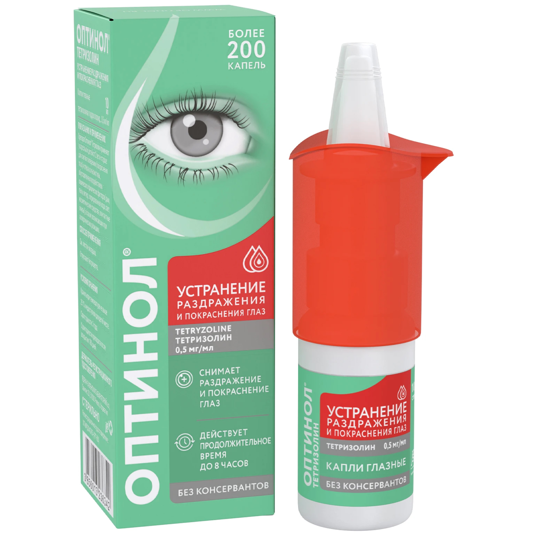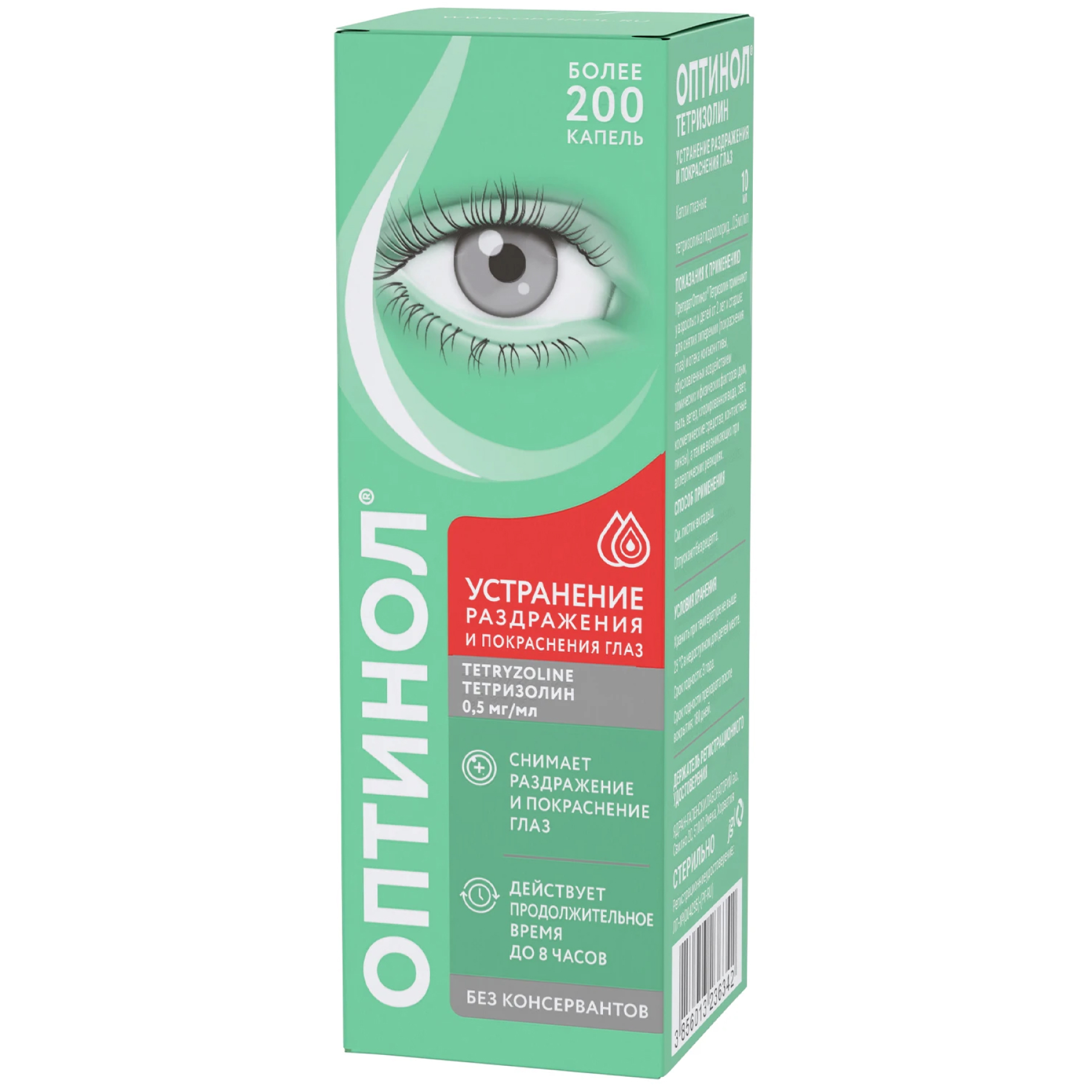 Благодаря специально разработанному механизму флакона, раствор остается стерильным в течение 180 дней (6 месяцев) после первого применения, при этом не содержит консервантов. Мультидозатор флакона обеспечивает точность дозирования и удобство применения препарата ОПТИНОЛ® ТЕТРИЗОЛИН. Флакон содержит 450 капель.