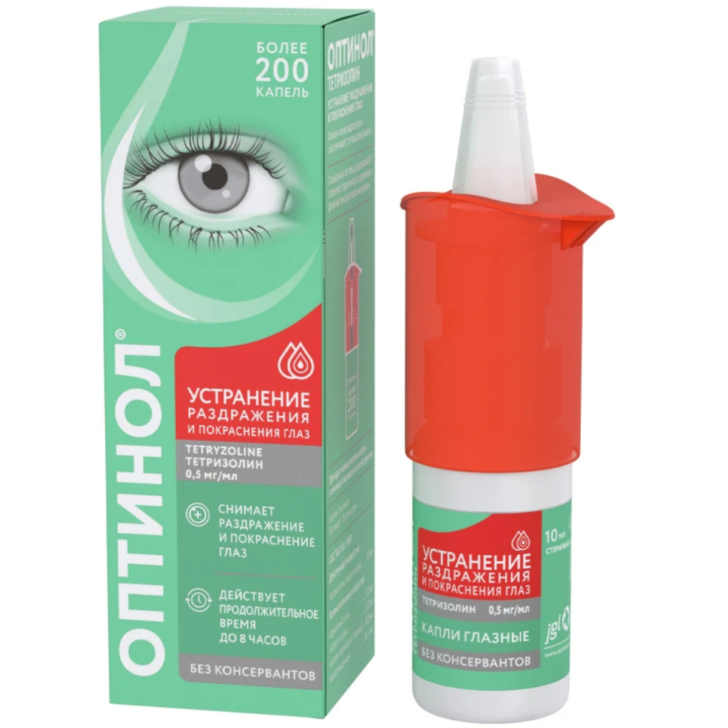 Препарат ОПТИНОЛ® ТЕТРИЗОЛИН должен применяться только при незначительном раздражении глаз. Если в течение 48 часов не происходит улучшения, или, в случае, если раздражение и покраснение сохраняется или прогрессирует, препарат необходимо отменить и проконсультироваться с врачом.