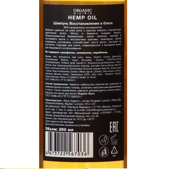 Нанести небольшое количество шампуня на влажные волосы и кожу головы, вспенить массажными движениями и смыть. После применения шампуня рекомендуется использовать бальзам или маску для волос Organic Guru.